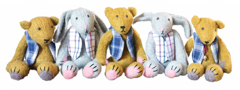 Where possible I try and use natural materials for my makes, including my bears which are knitted from real wool before being jointed and felted.
