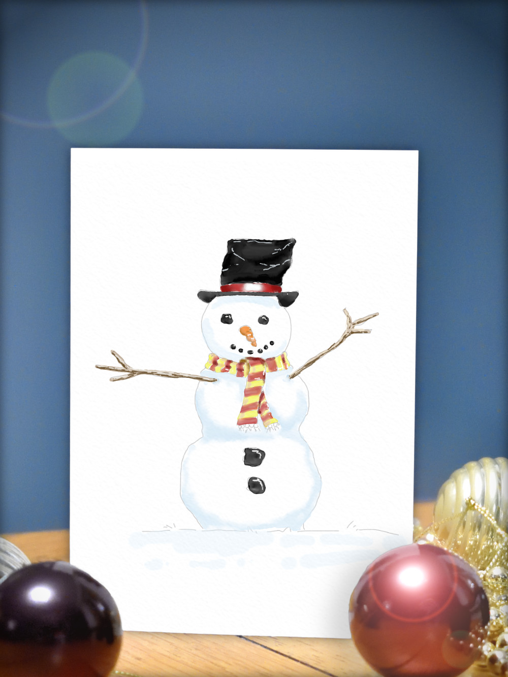Beautiful Christmas card featuring a lovely snowman.